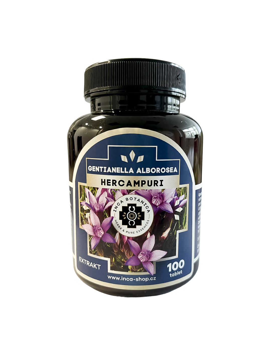 Každá tableta obsahuje standardizovaný extrakt z rostliny Hercampuri (Gentianella alborosea), bez konzervantů a zbytečných aditiv. Produkt je vyroben v České republice ze suroviny pocházející z Peru.